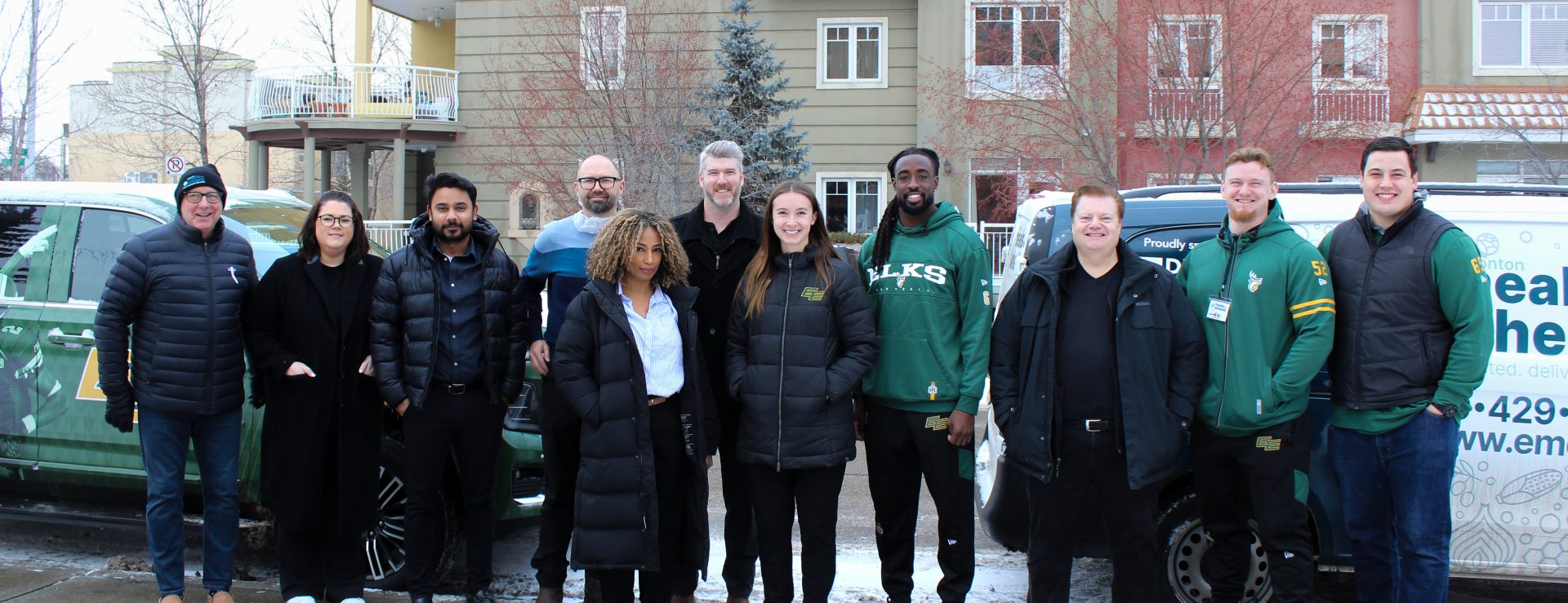 On December 3, 2025, Edmonton Meals on Wheels received a visit from the Driving Force along with several players from the Edmonton Elks. As the day’s Winter Feastival sponsor, the